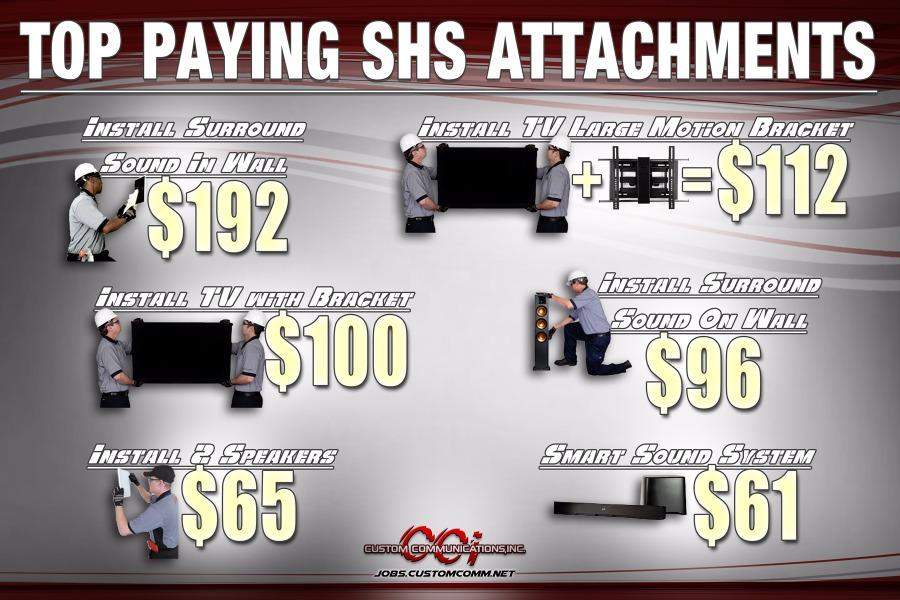 In home sales upgrades of additional products services Dish Satellite Video Installation Dish Satellite Internet Installation Verizon Wireless 4 G LTE Internet Installation TV Installation Smart Home Device Installation Cell Phone Repair Transition easily from these fields: