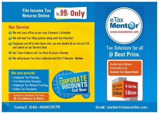 Filing of your Income Tax Return with eTaxMentor starts from Rs. 99 /-.