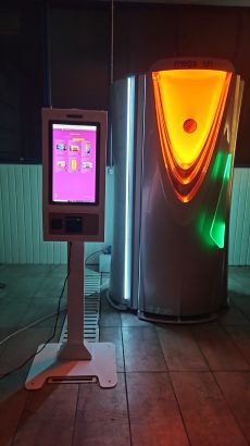Touch screen kiosk at the entrance, where customers can sign up, purchase minutes using card payment directly from their phone, and choose the tanning unit they prefer. This enables the salon to operate 24/7, even when staff is not present.
