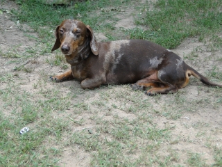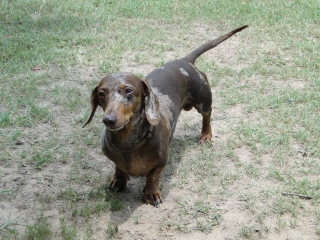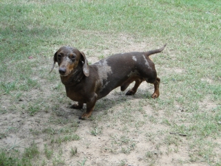 AKC mini male chocolate and tan dapple short hair to breed for pick of litter. Very sweet and loving disposition, loves kids. Prefer similar only no dapples.
