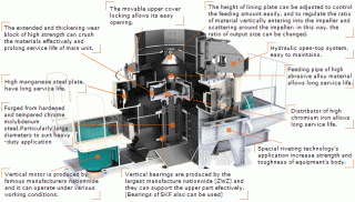 In Centrifugal impact crusher, material of high speed is crushed by self-broken mutual friction. Centrifugal impact crusher can not only crush but also shape stones.